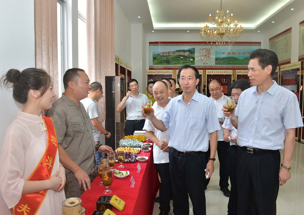 在阅茗厅中,李德金副省长察看了福安各个茶企的品牌产品,特别是隽永天香茶业展示品茗的坦洋工夫红茶、工艺花茶,得到李德金副省长的赞赏。