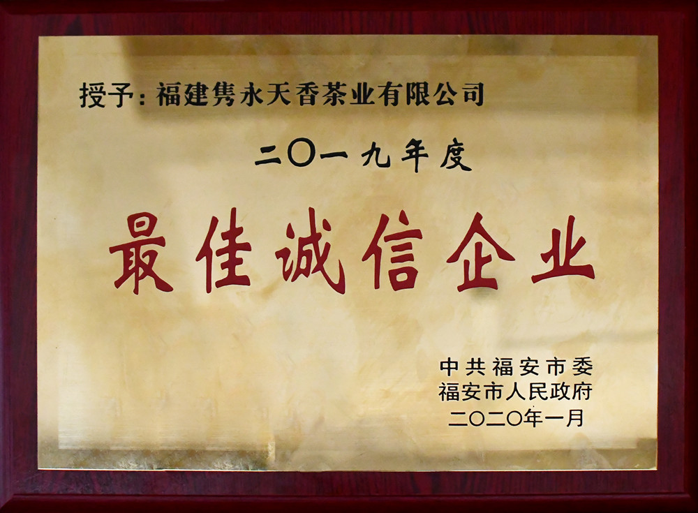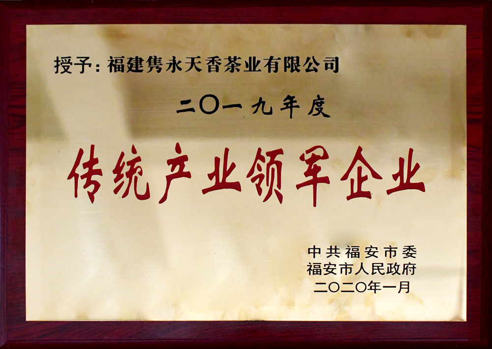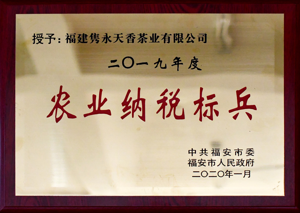 福建隽永天香茶业有限公司一举揽获“2019年农业纳税标兵”、“2019年传统产业领军企业”、“2019年度十佳诚信企业”三大奖,市领导为获奖企业和个人进行颁奖。