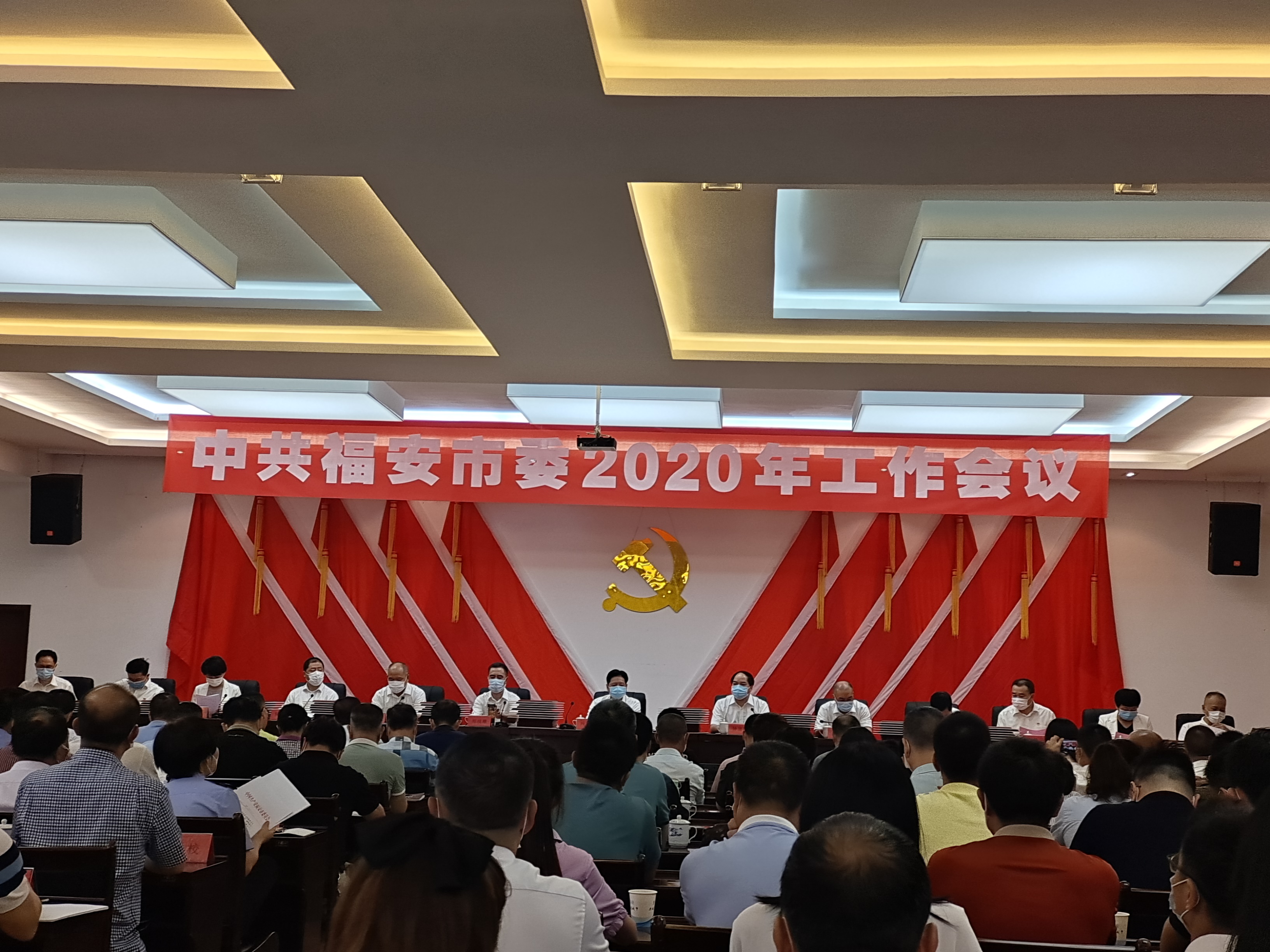 6月22日上午,福安市委召开2020年工作会议,总结今年以来我市经济社会发展情况,表彰先进、鼓舞士气,部署下一阶段统筹推进疫情防控和经济社会发展工作,动员全市上下持续做好“六稳”工作、落实“六保”任务,完成今年经济社会发展的目标任务。市委书记叶其发主持会议并讲话,市委副书记、市长钟宜国对全年的重点工作进行具体部署,市委副书记林志生宣读市委、市政府相关表扬文件。市领导郑战雄、陈昌东、吕增华、阮志勇、尤锋云、钟灵灵、陈文卿、邹渊、蔡立新、卢贤存及相关部门主要负责人等在主会场参加会议。