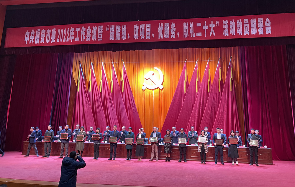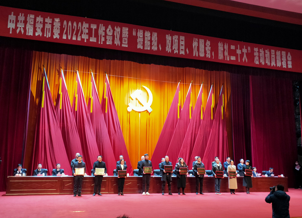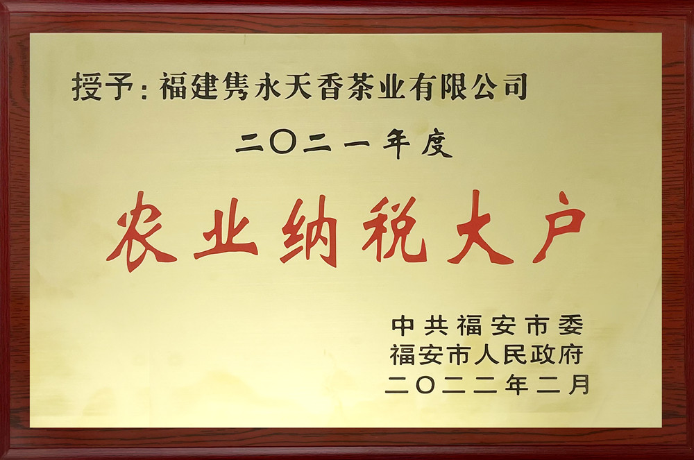 福建隽永天香茶业有限公司一举揽获“2021年农业纳税大户”、“2022-2023年度传统产业领军企业”、“2021年度最佳诚信企业”三大奖,市领导为获奖企业和个人进行颁奖。