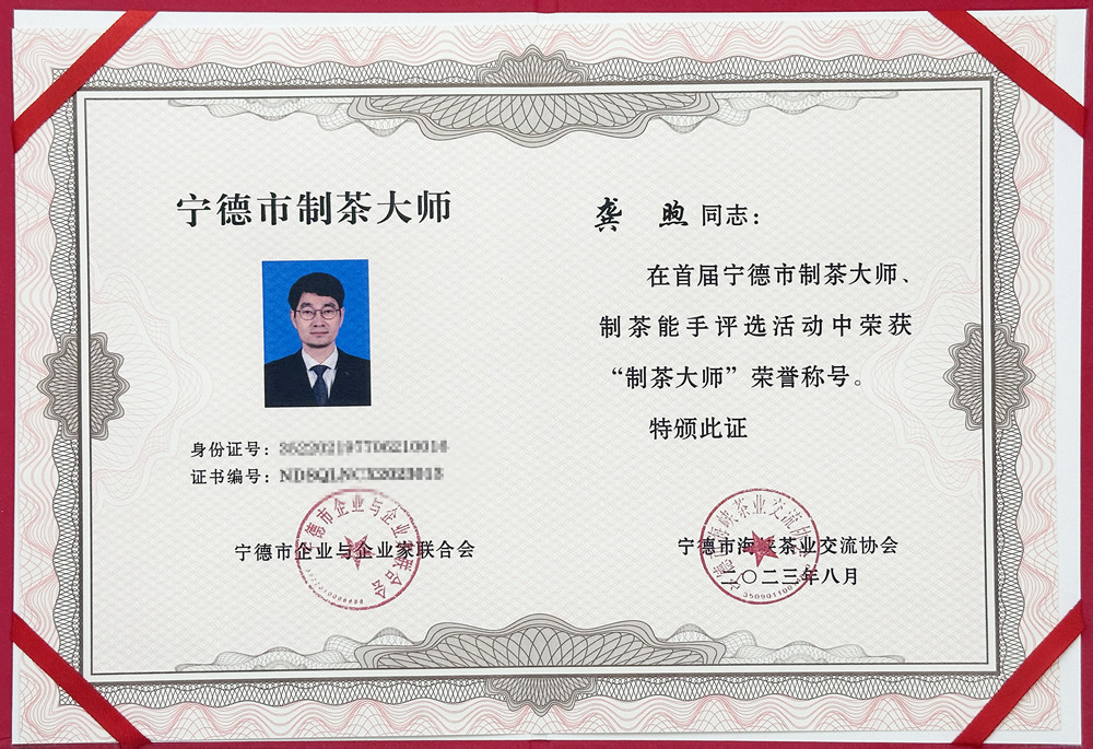 首届宁德市“制茶大师”“制茶能手”评选活动,经过茶样审评、资格认定、协会推荐以及参赛获奖、制茶工龄、职业证书、个人荣誉、非遗与专利、学徒培养六项指标综合评价、评委会审评、初选公示名单等环节,隽永天香龚煦荣获“制茶大师”称号。